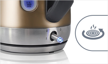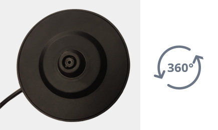Obrotowa podstawa 360° Obrotowa podstawa zapewnia wygodę użytkowana czajnika, pozwalając na umieszczenie dzbanka w dowolny sposób. Element łączący podstawę z dzbankiem jest mocowany na środku podstawy. |