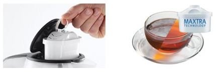 Załaczony filtr Brita Maxtra Ogranicza gromadzenie się osadu* w czajniku, usuwa chlor, miedź i ołów. Czystsza, bardziej przejrzysta i lepiej smakująca woda Ze względu na to, że woda, której używasz, jest wolna od zanieczyszczeń, Twoja kawa i herbata będą smakować lepiej** | |