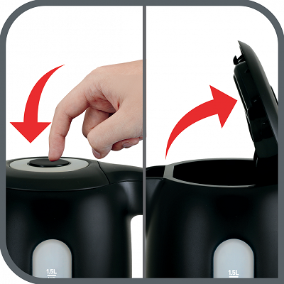 Pokrywka otwierana przyciskiem Łatwe napełnianie i czyszczenie dzięki dużemu wlotowi. |
