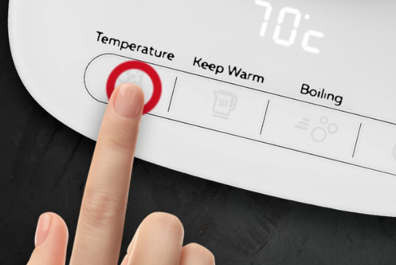 Wystarczy nacisnąć, by otworzyć czajnik.