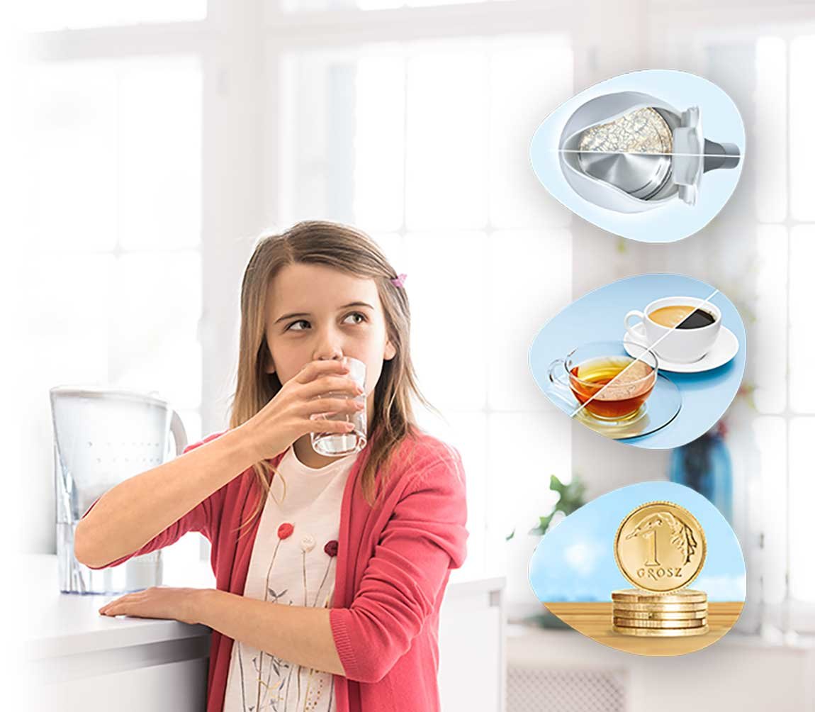 - Dzięki redukcji twardości wody pomaga chronić czajniki i ekspresy do kawy przed gromadzeniem się osadu kamiennego.
