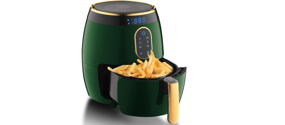 Frytkownica beztłuszczowa BERLINGER HAUS BH 9167 Emerald Collection Air Fryer pozwala smażyć za pomocą gorącego powietrza bez użycia oleju (lub z jego minimalną ilością). Sekret tkwi w ciągłej cyrkulacji cyklonowego powietrza. Nie musisz się martwić o to, że brak oleju oznacza odwodnioną i suchą żywność. Podgrzane powietrze wewnątrz komory zapewnia chrupkość produktu, jednocześnie zatrzymując wilgoć w środku. Pyszne frytki, krewetki, soczysty kurczak i wiele więcej. Wartość odżywcza pożywienia pozostaje niezmieniona, tłuszcze są redukowane nawet o 80%. Frytkownica jest wyposażona w 30-minutowy timer i termostat, który reguluje temperaturę w zakresie od 80 do 200 ° C.