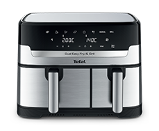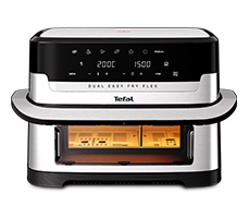 Frytkownica Tefal Dual Easy Fry Flex zużywa do 70% mniej energii* i gotuje o 40%** szybciej w porównaniu do tradycyjnego piekarnika. Z łatwością przygotujesz szeroką gamę zbilansowanych dań, zużywając przy tym mniej czasu i energii. Przeznacz go na przyjemności!