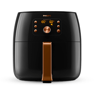 * Technologia Philips Rapid Air zwiększa 7-krotnie prędkość przepływu powietrza w koszu urządzenia w porównaniu z przepływem powietrza w urządzeniu Philips Viva Airfryer z płaskim dnem.