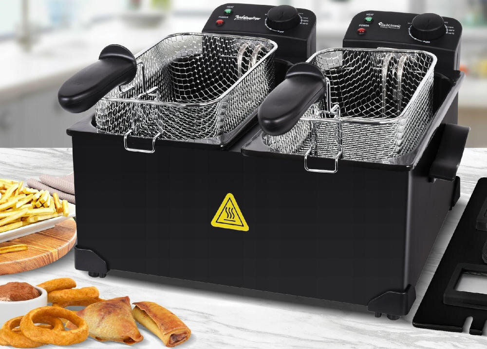 Sposób korzystania z podwójnej frytownicy mówi sam za siebie. Prościej się nie da. Obie części frytownicy mają pokrętło obrotowe, za pomocą którego można regulować temperaturę. Możesz usmażyć danie osobno w każdym koszu w innym ustawieniu. Kosze posiadają ergonomiczny uchwyt, dzięki któremu z łatwością wyłowisz z tłuszczu świeżo smażoną przekąskę.