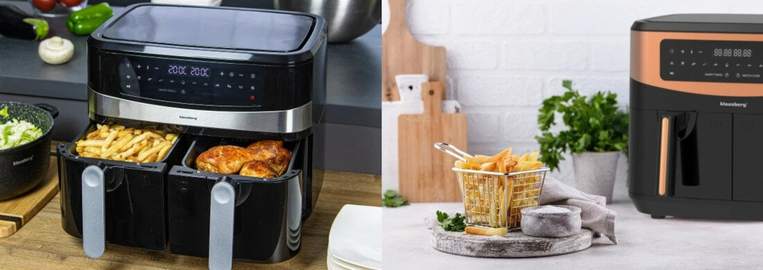 Air Fryer Frytkownica beztłuszczowa KLAUSBERG KB-7573 9l z podwójnym koszem programator czasowy