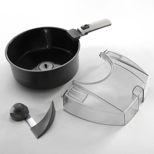 | Automatyczna łopatka do mieszania Automatyczna łopatka delikatnie miesza składniki, ułatwiając przygotowanie posiłku. Dzięki niej, z łatwością przyrządzisz wszelkiego rodzaju gulasze, ratatouille, ragoût, risotto, sosy lub kasze z dodatkami, bez obaw o przypalenie składników. Dzięki innowacyjnej konstrukcji, MultiFry może być używany także bez ruchomej łopatki, co pozwala zaserwować gotowane, smażone lub grillowane mięso, warzywa i ryby, a nawet upiec pizzę, ciasto, tarty i quiche. Łopatkę można łatwo zdemontować, aby przygotować dowolne danie bez mieszania. |