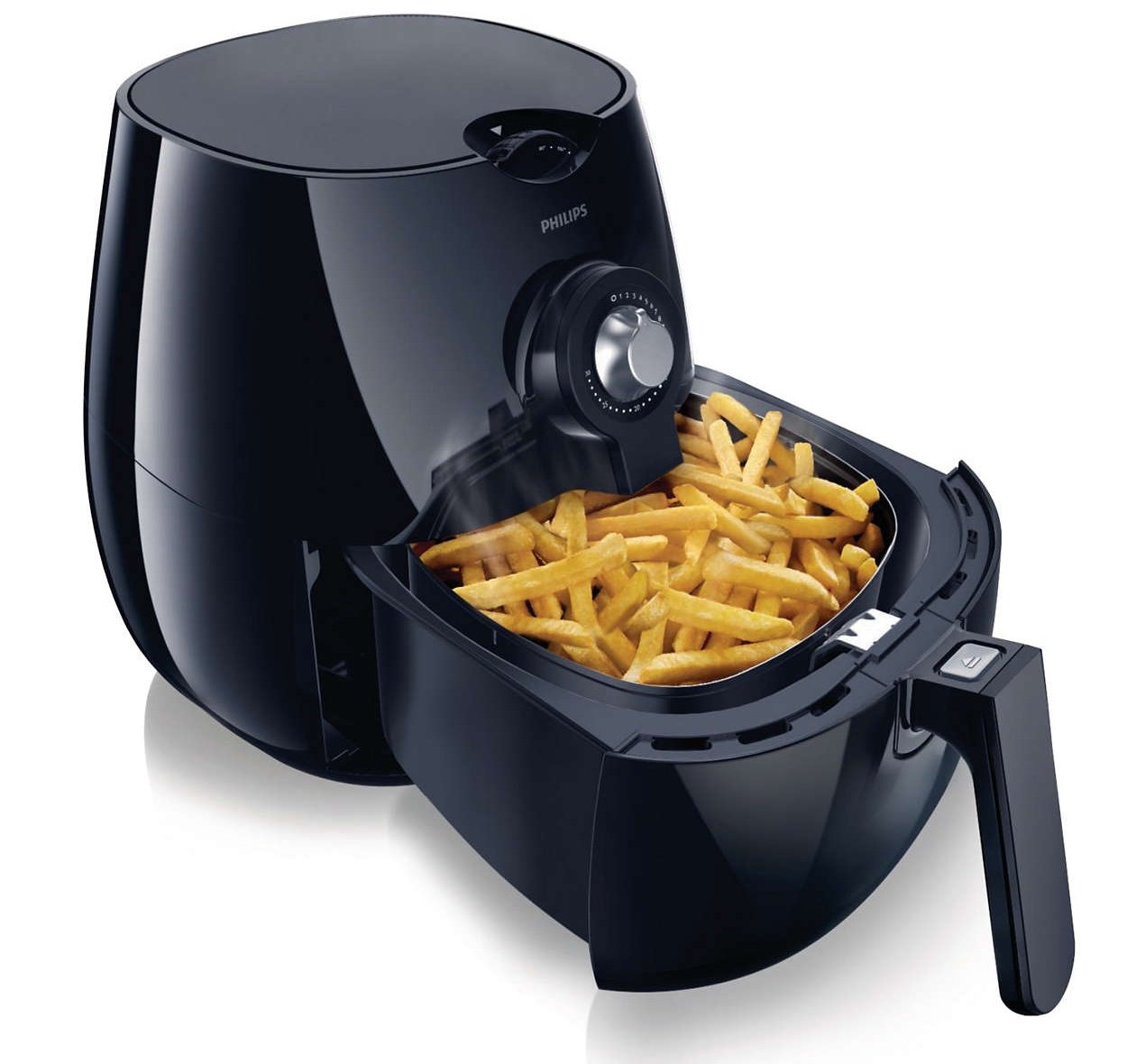 | Części można myć w zmywarce Wyjmowana szuflada z powłoką zapobiegającą przywieraniu oraz kosz na jedzenie mogą być myte w zmywarce. Airfryer firmy Philips z technologią Rapid Air to mniej zapachu smażonego oleju w domu w porównaniu ze zwykłą frytownicą. |