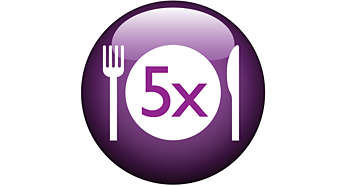 | Duża pojemność (1,2 kg) umożliwiająca przygotowywanie wielu posiłków o wspaniałym smaku Pojemność 1,2 kg wystarcza do przygotowania jedzenia nawet dla 5 osób. Teraz większe rodziny też mogą cieszyć się urządzeniem wielofunkcyjnym Airfryer dzięki pojemności zwiększonej o 50%** |
