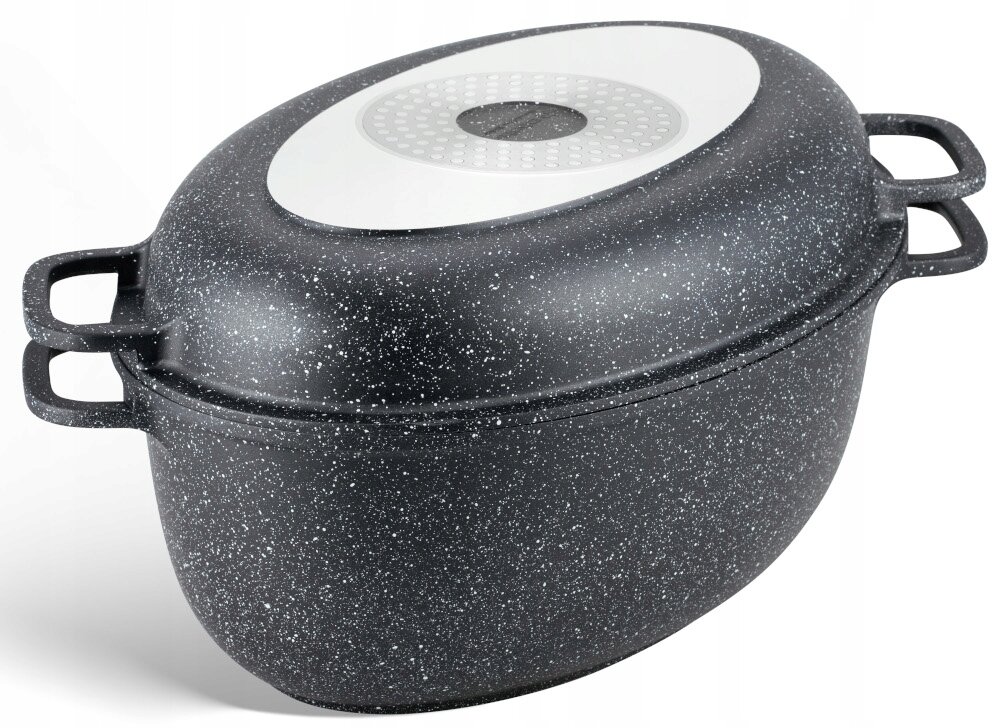 BRYTFANNA Gęsiarka MARMUROWA Patelnia GRILLOWA 2w1 Brytfanka 8L 38cm 9172