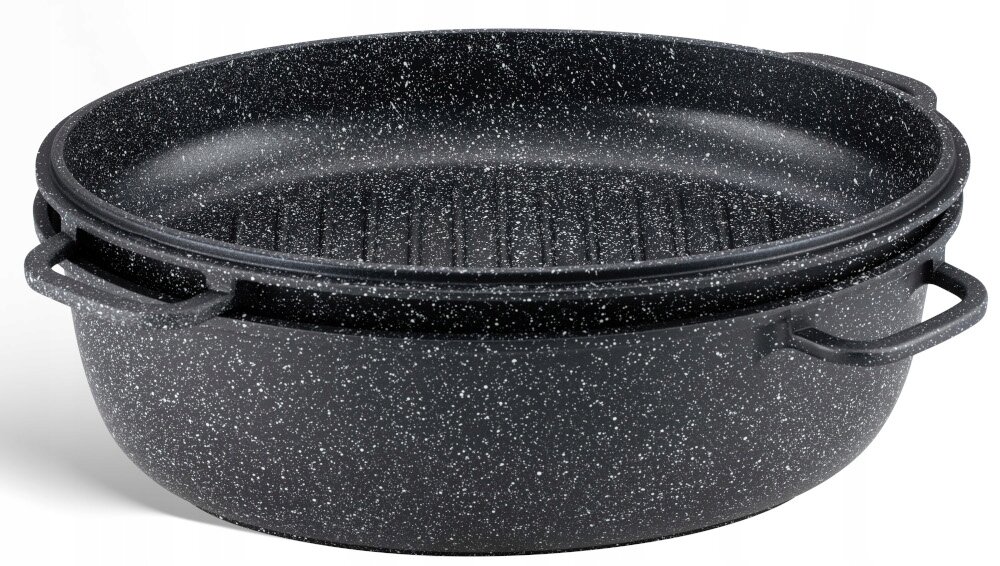 - BRYTFANNA Gęsiarka MARMUROWA Patelnia GRILLOWA 2w1 Brytfanka 8L 38cm 9172