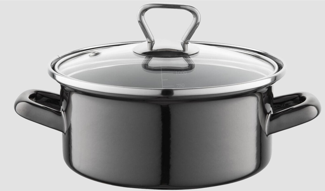 Elegancki emaliowany garnek Metalico zachwyca swoim wyrafinowanym wyglądem, łącząc funkcjonalność z estetyką. Jego połyskująca powierzchnia nie tylko spełnia praktyczną funkcję użytkową, ale także staje się ozdobą Twojej kuchni. Wewnątrz miarka o zakresie 250 - 1250 ml.