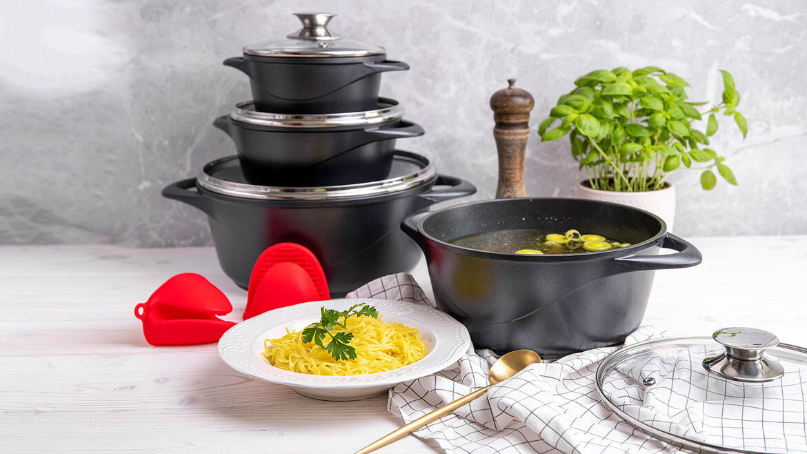 Różnorodna wielkość naczyń pozwoli z łatwością dobrać odpowiedni garnek do przygotowywanej potrawy.