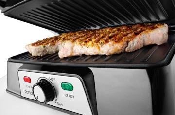 | Funkcje: | Lampka kontrolna temperatury, Odprowadzanie tłuszczu, Regulacja temperatury, Nieprzywieralna powłoka płyty |