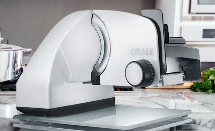 Uniwersalna Krajalnica GRAEF Master M91 to doskonałe urządzenie, które powinno znaleźć się w każdej kuchni. Metalowa konstrukcja w kolorze białym, podstawa z hartowanego szkła oraz elementy ze stali nierdzewnej tworzą niepowtarzalny charakter tej krajalnicy. Jest to urządzenie, którym krojenie różnych produktów spożywczych na plastry jest przyjemnością! Krajalnica M 91 marki GRAEF to energooszczędne urządzenie z cichym silnikiem o mocy 170 W z bardzo niskim zużyciem energii.