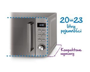 Kompaktowe wymiary Dzięki kompaktowym rozmiarom, na tę kuchenkę mikrofalową Beko znajdzie się miejsce w każdej kuchni. Pomimo niewielkich wymiarów zewnętrznych, wciąż dysponuje ona aż 20 litrami pojemności. |
