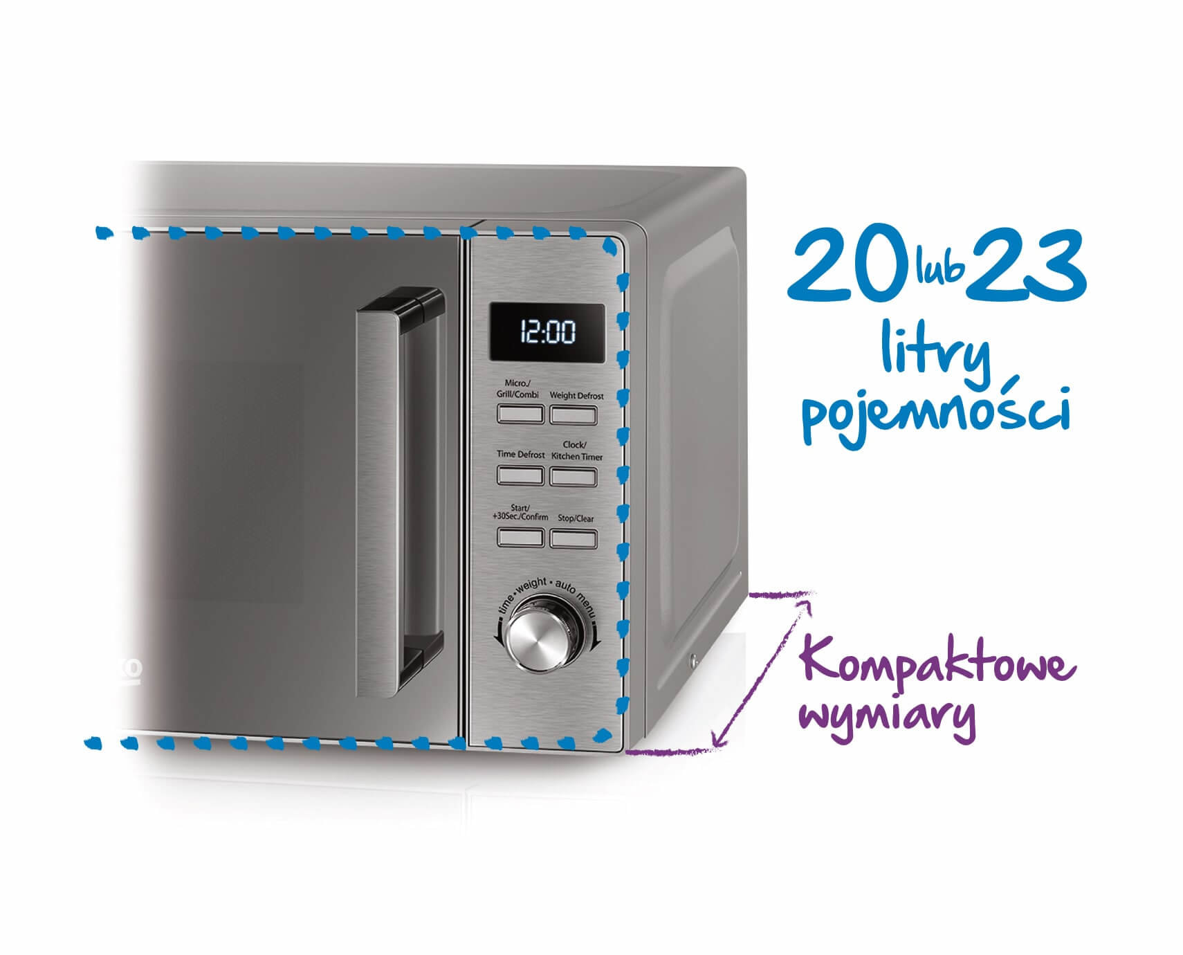 Kompaktowe wymiary Dzięki kompaktowym rozmiarom, na tę kuchenkę mikrofalową Beko znajdzie się miejsce w każdej kuchni. Pomimo niewielkich wymiarów zewnętrznych, wciąż dysponuje ona aż 20 litrami pojemności. |