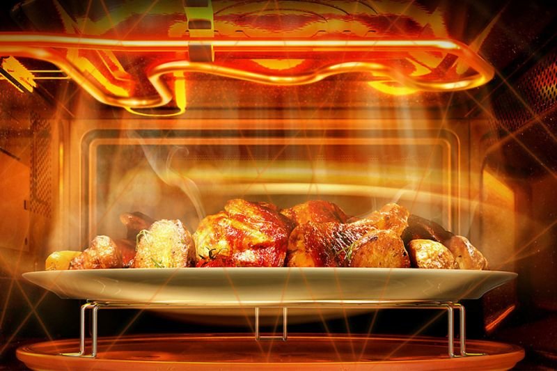 Promieniowanie mikrofalowe służące do podgrzewania żywności w kuchenkach mikrofalowych dociera do żywności do głębokości około 2,5 cm. Dalsze gotowanie odbywa się na zasadzie rozpraszania dostarczanego ciepła wewnątrz produktu. Dlatego przy krótkich czasach gotowania, ciepło z zewnętrznych obszarów przygotowywanego dania nie ma możliwości dotarcia w głąb potrawy.