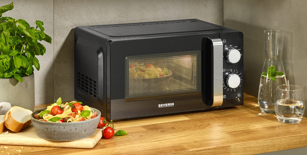 Obudowa kuchenki mikrofalowej SEVERIN wykonana została ze stali lakierowanej, która jest materiałem odpornym na wysokie temperatury. Kuchenka o mocy 700W. Jej pojemność wynosi 17 l. Wnętrze także zostało wykonane ze stali lakierowanej. Urządzenie posiada talerz obrotowy.