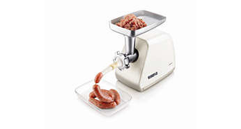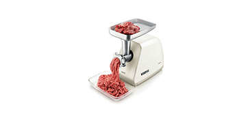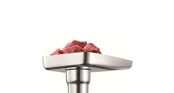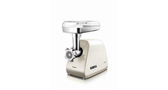 Maszynka do mięsa o wysokiej wydajności firmy Philips łączy w sobie mocny silnik, metalowy podajnik ślimakowy, ostry nóż i wymienne sitka ze stali szlachetnej. Po mieleniu czyszczenie jest proste dzięki specjalnemu akcesorium. |