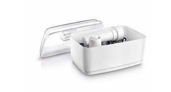 Praktyczny pojemnik na akcesoria w zestawie Dzięki pojemnikowi na akcesoria wszystkie akcesoria do maszynki do mięsa firmy Philips są zawsze pod ręką. |