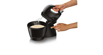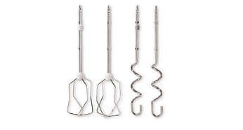 Końcówki do ubijania piany i wyrabiania ciasta w zestawie Przeznaczona do użytku z mikserem firmy Philips para końcówek ze stali szlachetnej do ubijania piany i wyrabiania ciasta pozwala ubijać, mieszać i wyrabiać składniki do wszystkich przepisów. |