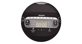 | Konstrukcja: | Otwór odprowadzający nadmiar pary, Podwójna grzałka, Ruchomy uchwyt ułatwiający przenoszenie, Wyjmowana misa pokryta powłoką nieprzywierającą, Wyświetlacz cyfrowy |