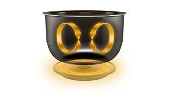 | Misa wewnętrzna z materiału zapobiegającego przywieraniu, którą można myć w zmywarce Misa wewnętrzna z materiału zapobiegającego przywieraniu, którą można myć w zmywarce |