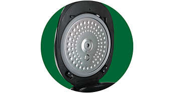Misa wewnętrzna z materiału zapobiegającego przywieraniu, którą można myć w zmywarce Misa wewnętrzna z materiału zapobiegającego przywieraniu, którą można myć w zmywarce |