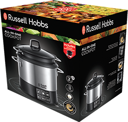 Dzięki Russell Hobbs All-In-One CookPot przy pomocy jednego urządzenia możesz przygotować szereg rodzinnych posiłków. W mgnieniu oka zobaczysz, że nie potrzebujesz już sterty garnków i patelni, ponieważ to jedno urządzenie zastąpi je wszystkie - wystarczy wybrać odpowiedni tryb: parowy, gotowania ryżu, wolnego gotowania, gotowania makaronu, wrzenia, sauté, gotowania risotto lub utrzymywania ciepła.