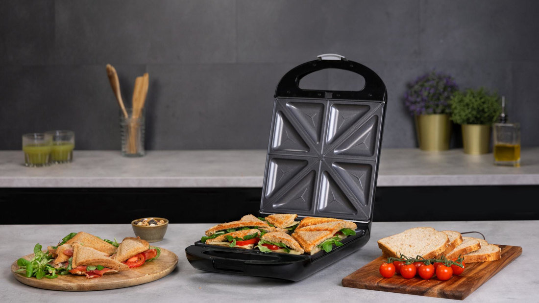 | Funkcje: | Opiekacz 3w1, Dodatkowe płytki, Nieprzywieralna powłoka płytek |
