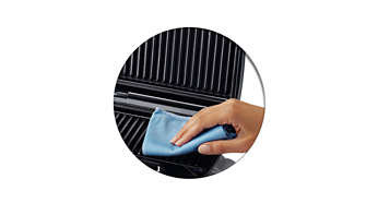 | Łatwe blokowanie (wystarczy docisnąć) Wystarczy docisnąć, aby w bezpieczny sposób zamknąć i zablokować opiekacz do kanapek. |