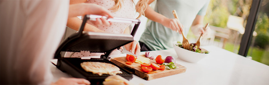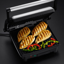 Opiekacz sprawdza się świetnie jako opiekacz pieczywa do kanapek typu panini, ale również jako grill do mięsa i warzyw - po przechyleniu pod niewielkim kątem. Po uniesieniu pokrywy może służyć jako beztłuszczowa patelnia do mięs i warzyw!