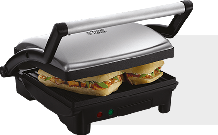 Opiekacz Panini od Russell Hobbs to idealna propozycja dla tych, którzy w kulinariach lubią kompromisy. Ten wielofunkcyjny sprzęt jest jednocześnie opiekaczem, grillem i patelnią, w zależności od tego, jak ustawisz pokrywę. Jest niezastąpiony nie tylko w małych kuchniach, ale także wszędzie tam, gdzie mieszkają prawdziwi miłośnicy zdrowych, aromatycznych potraw!