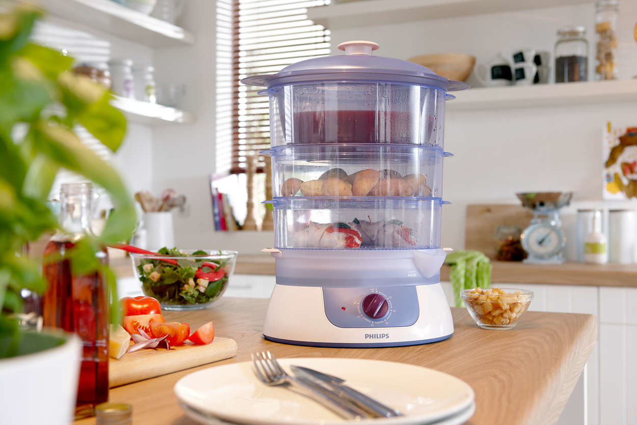 Parowar firmy Philips z pojemnikiem na przyprawy pozwala wzbogacić jedzenie o wspaniałe aromaty ziół i przypraw. W pojemniku do gotowania na parze XL możesz przygotować ulubioną zupę, gulasz, owsiankę, ryż i nie tylko. Nastaw zegar i gotowe! |