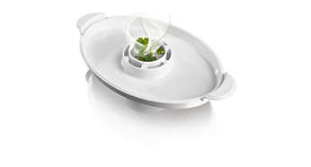 Pojemnik na przyprawy pozwala wzbogacić smak potraw wybornymi ziołami i przyprawami Wyjątkowy pojemnik na przyprawy, w który wyposażony jest parowar firmy Philips, pozwala nadać potrawom wyborny aromat ziół i przypraw, sprawiając, że gotowane na parze dania smakują jeszcze lepiej. Po prostu wrzuć do pojemnika ulubione zioła oraz przyprawy i poczekaj, aż zadziała para. Gorąca para uwalnia delikatny aromat ziół i przypraw, nadając potrawom wyborny smak. |