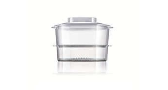 | Funkcje: | Automatyczne wyłączanie, Pojemnik do gotowania sypkich produktów, Minutnik, Możliwość mycia pojemników w zmywarce, Możliwość włożenia pojemnika w pojemnik, Wskaźnik poziomu wody, Zewnętrzne uzupełnianie wody |
