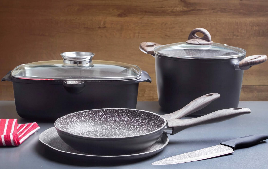 Naczynia wewnątrz pokryte są wysokiej jakości powłoką nieprzywierającą Qualum Basic Stone Edition o unikalnym wyglądzie przypominającym kamień. Rączki pokryte są antypoślizgowym materiałem Soft Touch imitującym drewno, zapewniają pewne trzymanie w dłoni.
