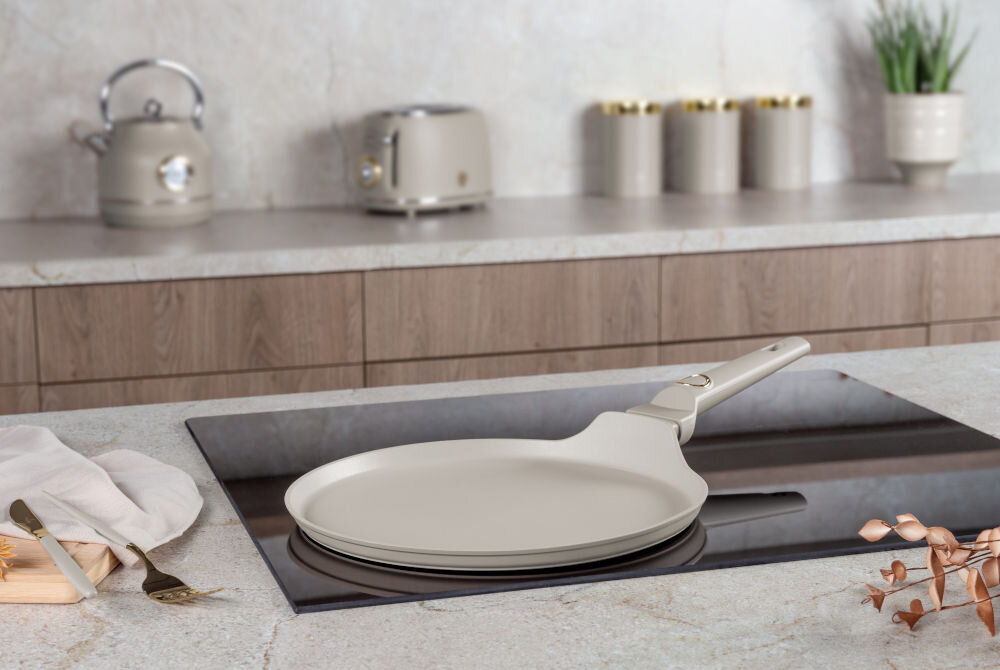Naleśniki, słodkie czy wytrawne, cieszą się ogromną popularnością. Aby sprostać tej powszechności, patelnia naleśnikowa BerlingerHaus BH-8056 z serii Sahara jest przystosowana do kuchni gazowych, jak i elektrycznych, i doskonale sprawuje się na kuchenkach indukcyjnych. Dzięki temu będzie funkcjonalna w każdym domu i pozostanie taka nawet po zmianach kuchennego wyposażenia.