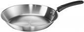 Patelnia o średnicy 24 cm, marki Tefal. Wykonana wewnątrz i na zewnątrz ze stali nierdzewnej, z nitowanym czarnym uchwytem oraz z dnem indukcyjnym o grubości 4.8 mm.