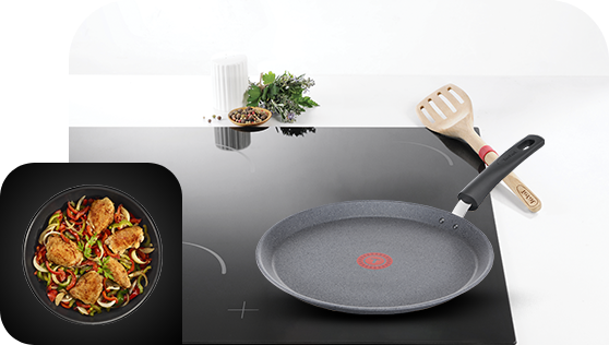 Thermo-Spot® zmienia kolor na intensywny czerwony, gdy patelnia osiągnie idealną temperaturę do smażenia. Dzięki temu masz gwarancję doskonałej konsystencji, koloru i smaku pysznych, pełnowartościowych potraw przygotowywanych każdego dnia.