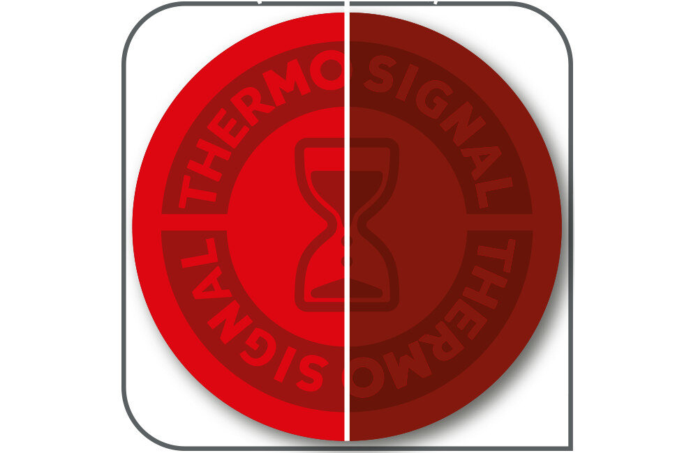 Wskaźnik zmienia kolor na mocno czerwony, gdy patelnia rozgrzeje się do temperatury idealnej do smażenia. Dzięki temu zyskujesz idealną teksturę, kolor i smak swoich dań przy zachowaniu maksimum wartości odżywczych.