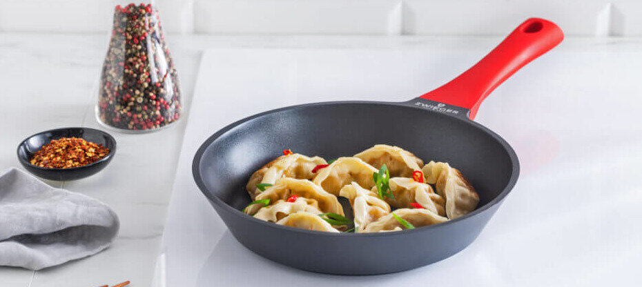 Patelnia Zwieger z odlewanego aluminium. Wewnętrzną część naczynia pokrywa innowacyjna, 3-warstwowa, nieprzywierająca powłoka Greblon non-stick firmy WEILBURGER. Ze względu na swoje wyjątkowe właściwości, zwiększające odporność na zarysowania, powłoka ta stosowana jest w naczyniach najwyższej klasy. Dodatkowo żaroodporny lakier silikonowy, który pokrywa patelnię na zewnątrz, sprawia, że zachowuje ona swój estetyczny wygląd przez długi czas. Ponadto patelnia Zwieger doskonale przewodzi i akumuluje ciepło. Naszych patelni można używać na wszystkich rodzajach kuchenek grzewczych, w tym na płytach indukcyjnych. Co więcej, użyty pełny dysk indukcyjny, dzięki pełnemu przewodzeniu magnetycznemu, zapewnia lepsze wykorzystanie energii (do 40%). Zastosowana nieprzywierająca powłoka pozwala smażyć przy minimalnym lub całkowitym braku zużycia tłuszczu, co niewątpliwie przekłada się na zdrowy tryb życia. Maksymalna temperatura pracy 240 st. C. Rączka została wykonana z materiału PP, który nie przewodzi ciepła, a także posiada specjalną powłokę soft touch, zapewniającą wygodny i pewny chwyt.