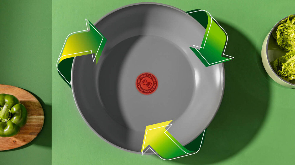 | Funkcje: | Wskaźnik nagrzania, Odłączana rączka, Zestaw patelni |