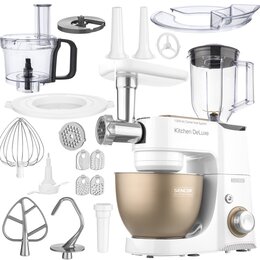 Wyposażony jest 3 nasadki do ugniatania, ubijania ciasta, hak do ugniatania, trzepaczkę w kształcie litery A, trzepaczkę balonową. Ponadto zawiera nasadkę do przygotowania kiełbasek o 2 średnicach, 2 butelki z Tritanu z 2 wkładami chłodzącymi (ICE STICK), blender stołowy z ostrzami tytanowymi o objętości 1.25 l, wielofunkcyjny food processor o objętości 1.25 l z 4 nasadkami i siekaczem, młynek do mięsa, do grubego i delikatnego mielenia z nasadką do przygotowania kiełbasek o 2 średnicach, 4.5 litrową misę do ugniatania z podziałką do odmierzania, wykonaną ze stali nierdzewnej.
