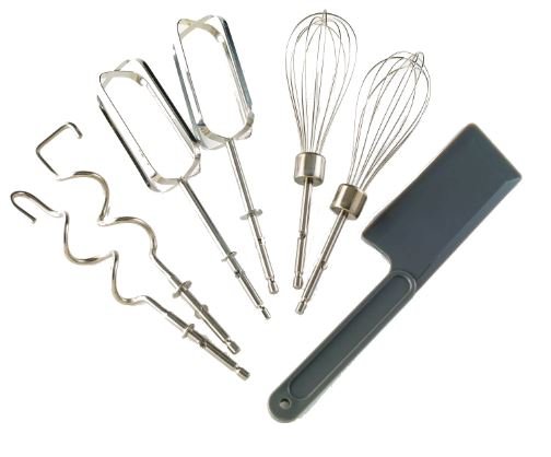 3 rodzaje końcówek Do mieszania, zagniatania i trzepania. Końcówki można myć w zmywarce. |