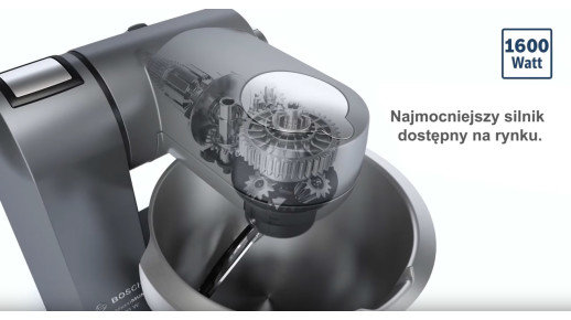 Ten silnik o dużej mocy 1600 W zapewnia najwyższy, profesjonalny standard działania. Gwarantuje szybkie i doskonałe rezultaty z zachowaniem stałej, wysokiej jakości nawet podczas wyrabiania trudnych ciast na chleb i makaron.