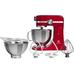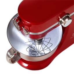 Urządzenie EKM 4000 w kolorze czerwonym jest wyposażone w spiralne mieszadło hakowe, końcówkę do ubijania oraz płaskie mieszadło, które pozwalają szybciej wyrobić ciasto, przygotować doskonałe purée ziemniaczane, idealnie ubić śmietanę albo dokładnie wymieszać ciasto na naleśniki. |