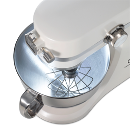 Urządzenie EKM 4100 w jest wyposażone w spiralne mieszadło hakowe, końcówkę do ubijania oraz płaskie mieszadło, które pozwalają szybciej wyrobić ciasto, przygotować doskonałe purée ziemniaczane, idealnie ubić śmietanę albo dokładnie wymieszać ciasto na naleśniki. |