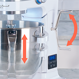 System podnoszenia miski Profesjonalny system podnoszący umożliwia użycie większej miski bez pogorszenia stabilności. Dzięki temu, ponieważ urządzenie nie ma odchylanej głowicy, można ustawić je na blacie kuchennym. |